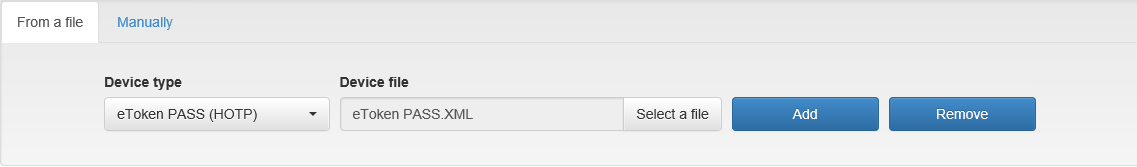You can also add a device from a file with device parameters on the From a file tab or manually on the Manually tab.
