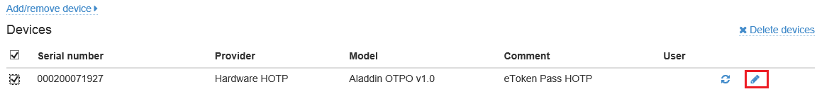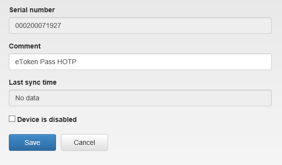 - Change the device serial number and the comment or deactivate the device. To save changes, click Save.