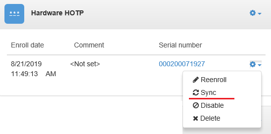 - Specify one-time passwords of the device and click Sync.