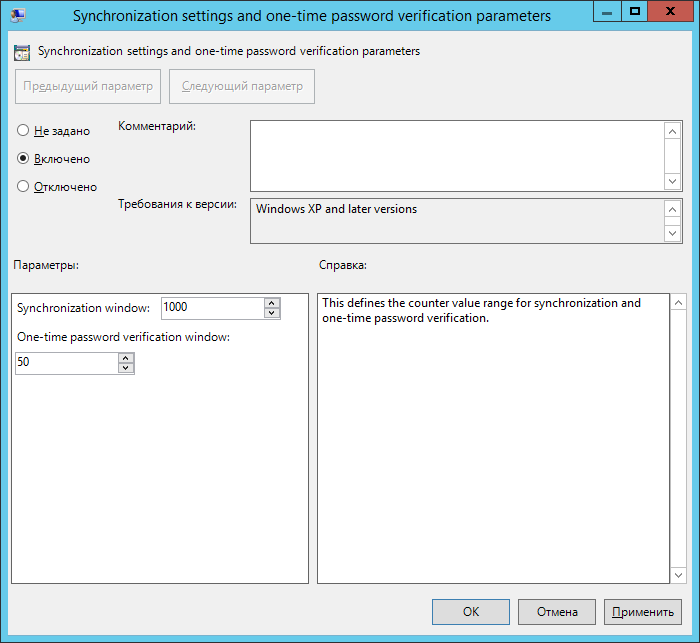 This policy defines the counter value range for synchronization and one-time password verification.
