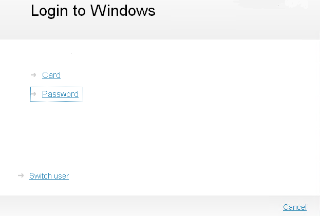 - When you first log in to the system or to the app via Axidian authentication, select the login method by clicking Switch authentication Method on the Windows login screen (on the Authentication screen if you use Enterprise SSO). Select Card (HID OMNIKEY) as a login method.
