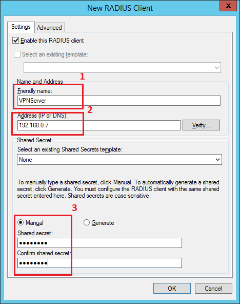 Configure the new RADIUS client: