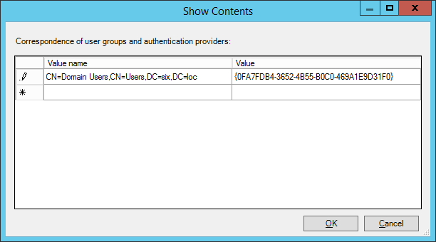 distinguishedNameattribute value of your user group to the Value name parameter.Paste the key of the provider used as the Value parameter.