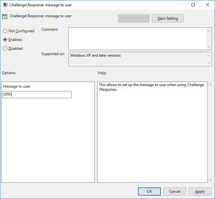 Challenge\Response setting