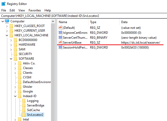 - Go to HKEY_LOCAL_MACHINE\SOFTWARE\Axidian-ID\SrvLocator2.