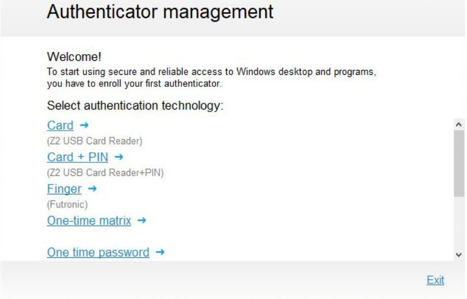 - To continue with authenticator registration, select one of the authentication methods available in the Authenticator management window.