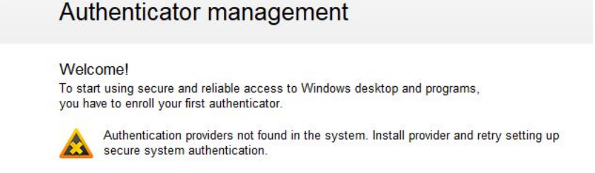 If the required Axidian Access providers are not found on the user workstation, authenticator registration is not possible.