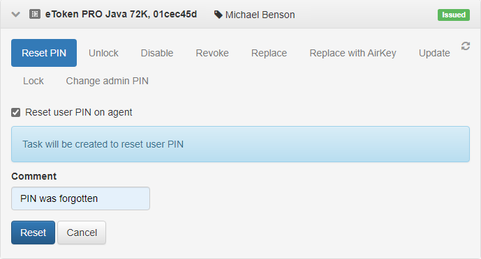 Reset user PIN