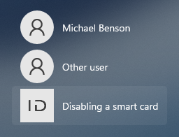 On the Windows lock screen, select Disabling a smart card.